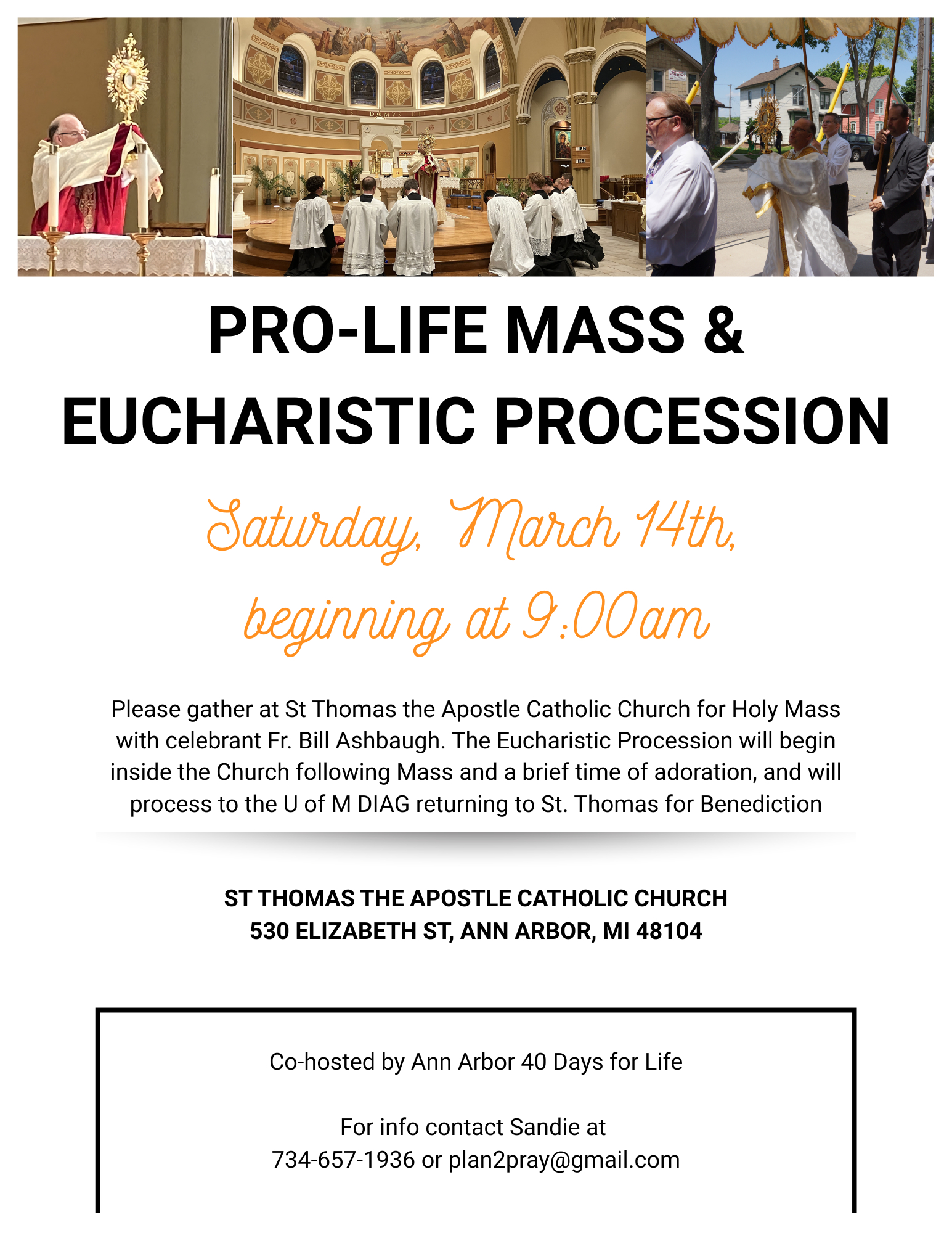 Kickoff Rally & Jericho March: Sunday, February 15th from 2 pm to 3:30 pm - outside of Planned Parenthood with Keynote Speaker and spiritual leaders TBA. (Please note: Pastor Joe Polzin, Christ Our King Lutheran will either speak at the Kickoff Rally or Closing Rally). Please start to gather at 1:50 PM outside of Planned Parenthood at 3100 Professional Dr in Ann Arbor for the Kickoff Rally. At approximately 2:45 we will depart Planned Parenthood on Lap 1 of our Seven Consecutive Sundays INTERFAITH JERICHO MARCH inspired by the book of Joshua (chapter 7) which will include prayer, singing and Scripture readings as we walk the 1-mile block around Planned Parenthood. Our event will conclude at approximately 3:30 pm. Stay turned for updates!