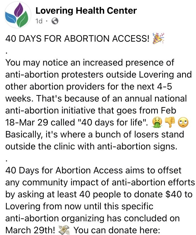 But the abortion facility also acknowledges a need "to offset any community impact" of 40 Days for Life.