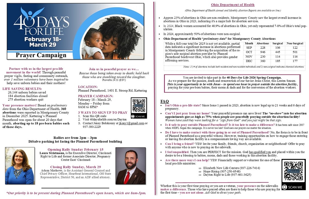 WELCOME TO THE DAYTON 40 DAYS FOR LIFE 2026 SPRING PRAYER VIGIL!